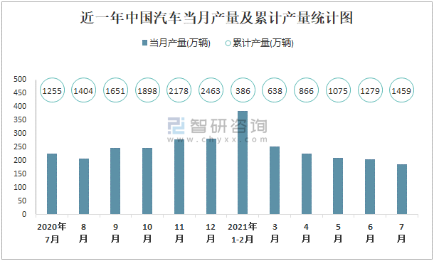 根據(jù)國家統(tǒng)計局?jǐn)?shù)據(jù)顯示:2021年7月中國汽車產(chǎn)量為185萬輛,同比下降15.8%;2021年1-7月中國汽車?yán)塾嫯a(chǎn)量為1459.1萬輛,累計增長18.9%;2015-2020年中國汽車產(chǎn)量2017年起逐年遞減。