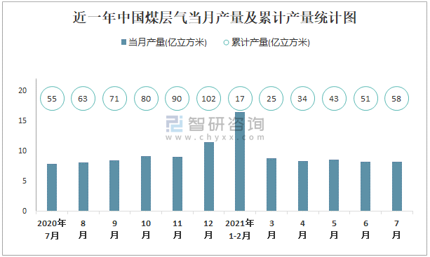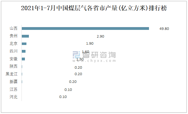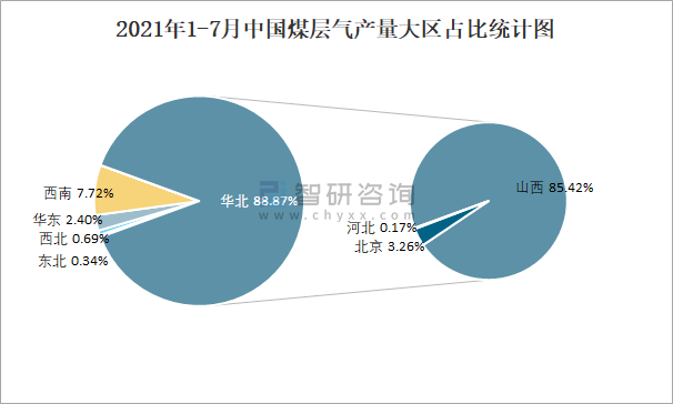 2021年1-7月中國煤層氣產量為58.4億立方米 華北地區產量最高(占比88.9%)