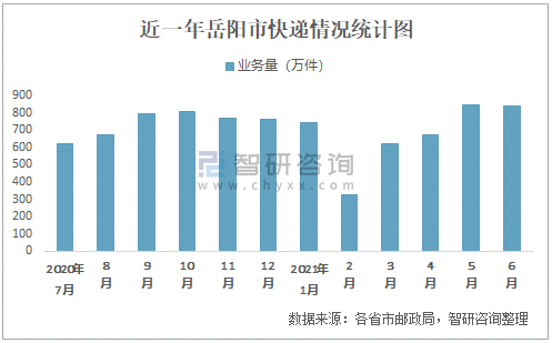 近一年岳陽市快遞情況統(tǒng)計(jì)圖