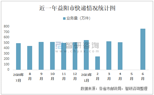 2021年6月益陽市快遞業(yè)務(wù)量757.27萬件