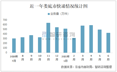 近一年婁底市快遞情況統計圖