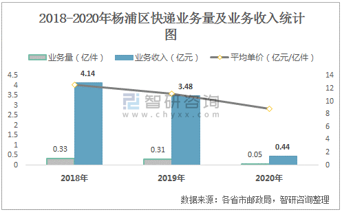 2018-2020年楊浦區(qū)快遞業(yè)務(wù)量及業(yè)務(wù)收入統(tǒng)計圖