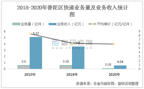 根據(jù)各省市郵政局?jǐn)?shù)據(jù)可知:2021年6月普陀區(qū)快遞業(yè)務(wù)量為128.4萬件,業(yè)務(wù)收入為1549.2萬元;2021年1-6月普陀區(qū)快遞累計業(yè)務(wù)量為2860.2萬件,同比增長25.8%,累計業(yè)務(wù)收入為15431.1萬元,同比增長-11.1%;;2018-2020年普陀區(qū)快遞業(yè)務(wù)量與業(yè)務(wù)收入均逐年遞減,平均單價逐年遞減。