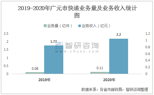 2019-2020年廣元市快遞業(yè)務(wù)量及業(yè)務(wù)收入統(tǒng)計(jì)圖