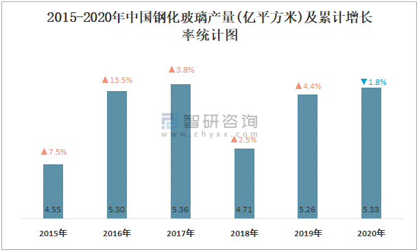 2015-2020年中國鋼化玻璃產(chǎn)量及增長率統(tǒng)計圖