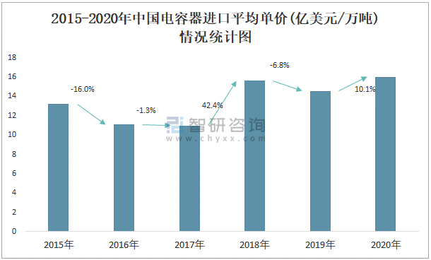 根據(jù)中國海關(guān)數(shù)據(jù)顯示:2015-2020年中國電容器進(jìn)口數(shù)量和進(jìn)口金額均在2018年達(dá)到最大值,此后有所下降;2015-2020年中國電容器進(jìn)口平均單價2018年增長速度最快,而2016年中國電容器進(jìn)口平均單價下降速度最快,下滑了16.0%。