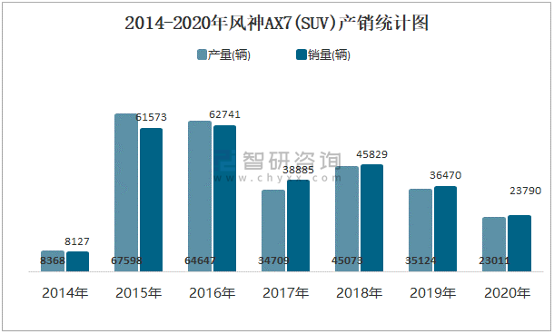 2014-2020年風(fēng)神AX7(SUV)產(chǎn)銷統(tǒng)計(jì)圖