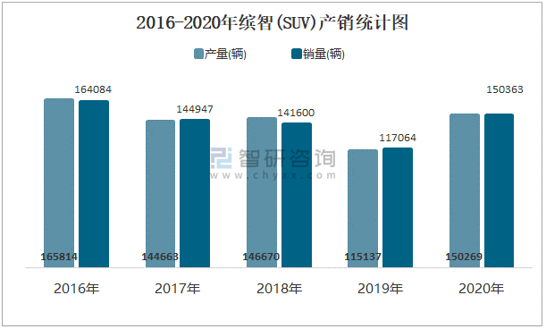 2016-2020年繽智(SUV)產(chǎn)銷統(tǒng)計圖