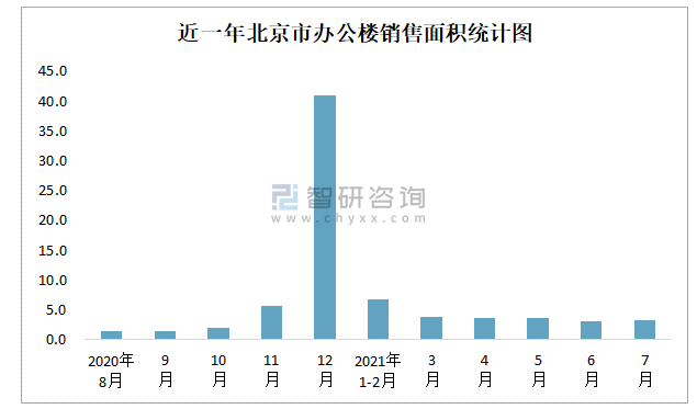 近一年北京市辦公樓銷售面積統計圖