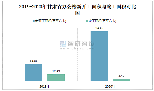 2019-2020年甘肅省辦公樓新開工面積與竣工面積對比圖