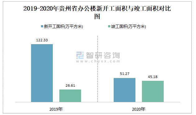 2019-2020年貴州省辦公樓新開工面積與竣工面積對比圖