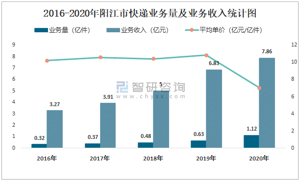 2016-2020年陽江市快遞業(yè)務(wù)量及業(yè)務(wù)收入統(tǒng)計圖