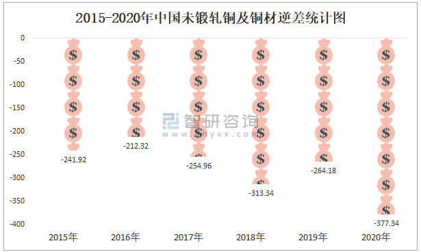 2015-2020年中國(guó)未鍛軋銅及銅材逆差(億美元)統(tǒng)計(jì)圖