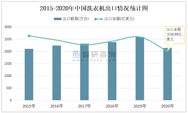 2015-2020年中國洗衣機出口情況統計圖