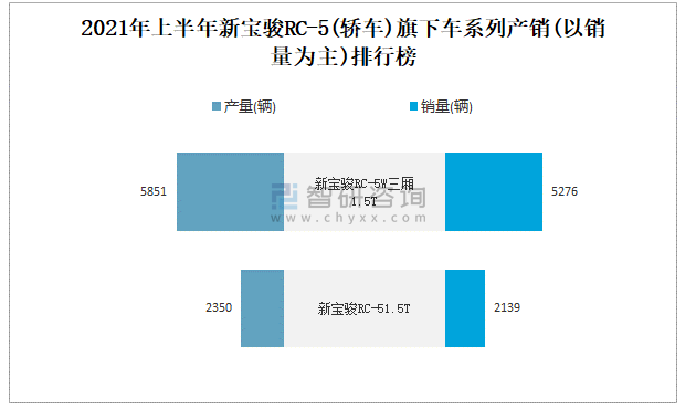 2021年上半年新寶駿RC-5(轎車)旗下車系列產銷(以銷量為主)排行榜