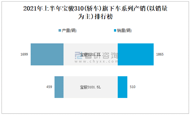 2021年上半年寶駿310(轎車)旗下車系列產銷(以銷量為主)排行榜