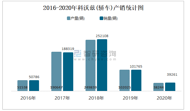 2016-2020年科沃茲(轎車)產(chǎn)銷統(tǒng)計(jì)圖