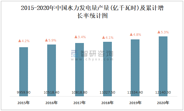 根據國家統計局數據顯示:2021年7月中國水力發電量產量為1422億千瓦時,同比下降4.3%;2021年1-7月中國水力發電量累計產量為6247.4億千瓦時,累計下降0.1%;2015-2020年中國水力發電量產量逐年遞增,2020年達到最高。