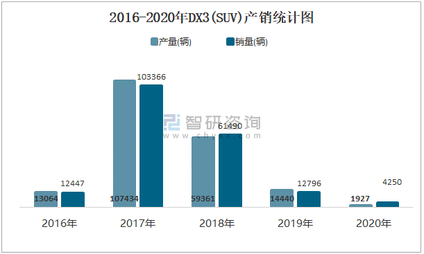 2016-2020年DX3(SUV)產銷統計圖