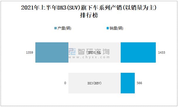 2021年上半年DX3(SUV)產銷量分別為1359輛和1999輛 產銷率為147.09%
