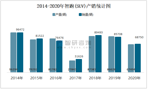 2014-2020年智跑(SUV)產銷統計圖