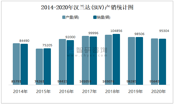 2014-2020年漢蘭達(SUV)產銷統計圖
