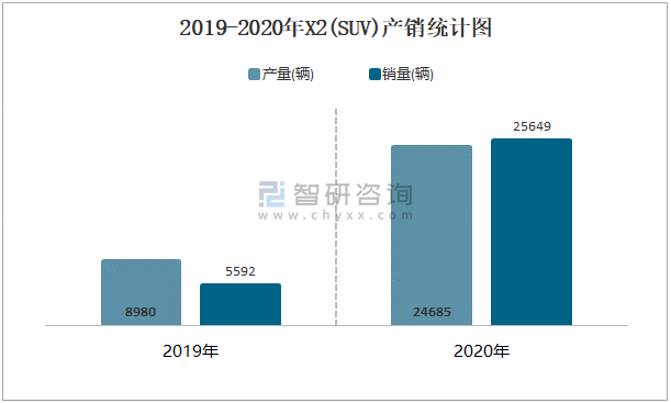 2019-2020年X2(SUV)產(chǎn)銷統(tǒng)計(jì)圖