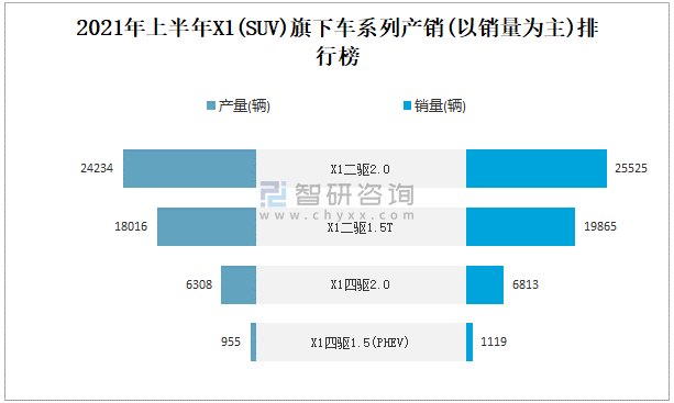 2021年上半年X1(SUV)旗下車系列產銷(以銷量為主)排行榜