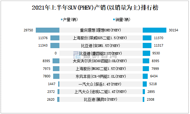 2021年上半年SUV(PHEV)產銷(以銷量為主)排行榜