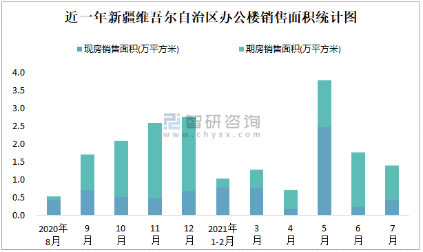 根據(jù)國家統(tǒng)計局?jǐn)?shù)據(jù)可知:2021年7月新疆維吾爾自治區(qū)辦公樓銷售面積為1.39萬平方米(其中銷售現(xiàn)房0.43萬平方米,期房0.96萬平方米);2021年1-7月新疆維吾爾自治區(qū)辦公樓累計銷售面積為9.95萬平方米;近一年新疆維吾爾自治區(qū)辦公樓期房銷售面積遠(yuǎn)高于現(xiàn)房銷售面積,2021年7月四川、廣東、江蘇的辦公樓銷售面積最多,江蘇、上海、浙江、廣東的辦公樓現(xiàn)房銷售面積高于其他各省市。