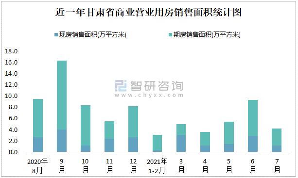 根據國家統計局數據可知:2021年7月甘肅省商業營業用房銷售面積為4.23萬平方米(其中銷售現房1.19萬平方米,期房3.04萬平方米);2021年1-7月甘肅省商業營業用房累計銷售面積為30.69萬平方米;近一年甘肅省商業營業用房期房銷售面積遠高于現房銷售面積。