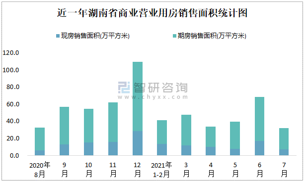 根據國家統計局數據可知:2021年7月湖南省商業營業用房銷售面積為31.88萬平方米(其中銷售現房7.33萬平方米,期房24.55萬平方米);2021年1-7月湖南省商業營業用房累計銷售面積為262.24萬平方米;近一年湖南省商業營業用房期房銷售面積遠高于現房銷售面積。