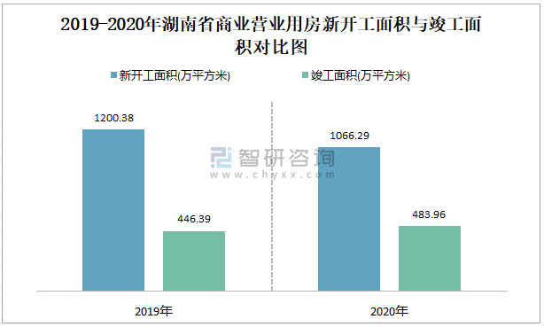 2019-2020年湖南省商業營業用房新開工面積與竣工面積對比圖