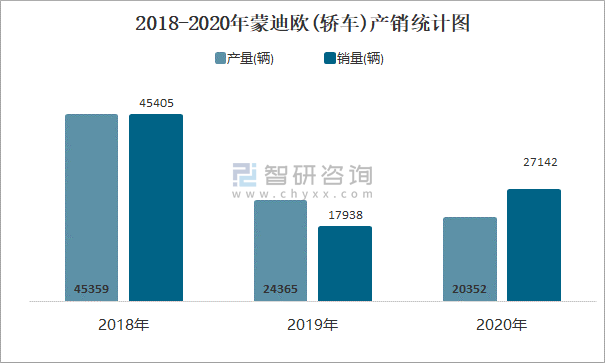 2018-2020年蒙迪歐(轎車)產銷統計圖