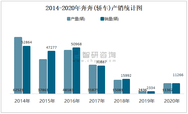 2014-2020年奔奔(轎車)產銷統計圖