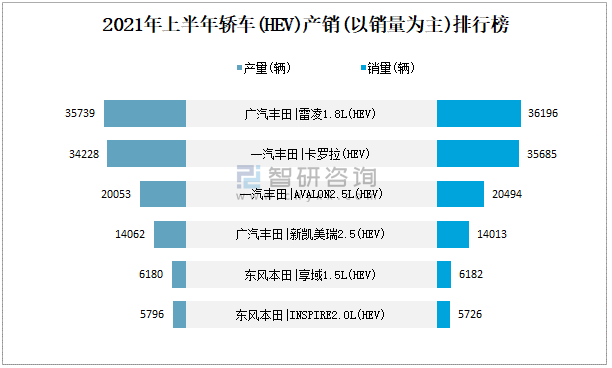 2021年上半年轎車(HEV)產銷(以銷量為主)排行榜