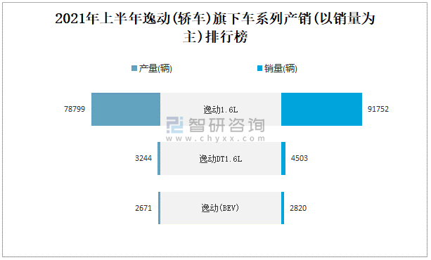 2021年上半年逸動(轎車)旗下車系列產(chǎn)銷(以銷量為主)排行榜