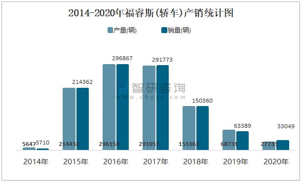 2014-2020年福睿斯(轎車)產(chǎn)銷統(tǒng)計(jì)圖