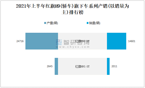2021年上半年紅旗H9(轎車)旗下車系列產銷(以銷量為主)排行榜