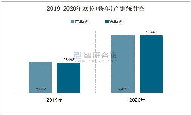 2019-2020年歐拉(轎車)產銷統計圖