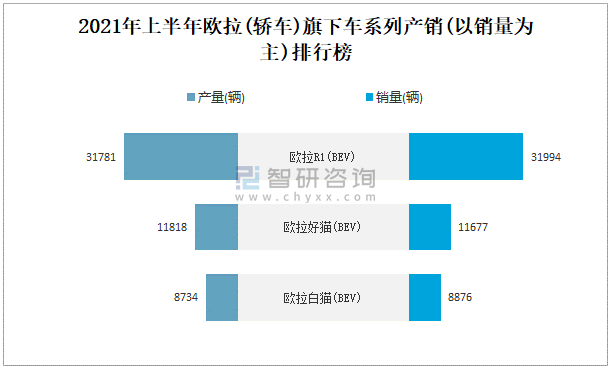 2021年上半年歐拉(轎車)旗下車系列產銷(以銷量為主)排行榜