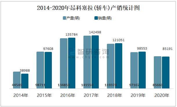2014-2020年昂科塞拉(轎車)產(chǎn)銷統(tǒng)計(jì)圖