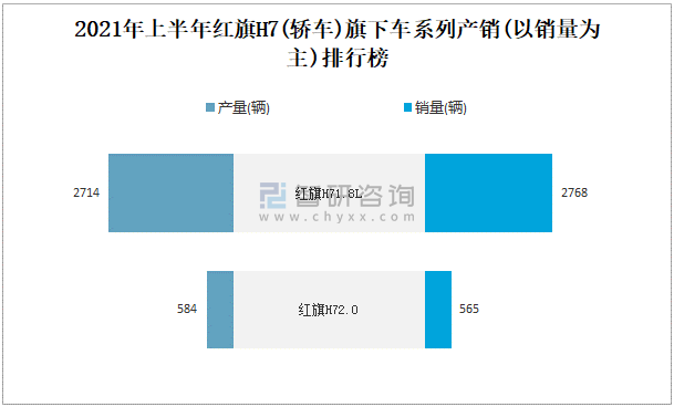 2021年上半年紅旗H7(轎車)旗下車系列產銷(以銷量為主)排行榜