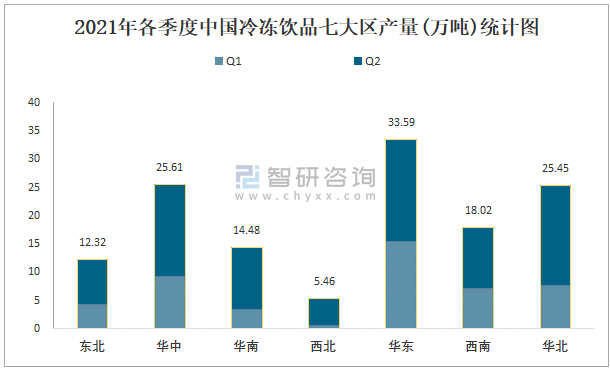 2021年1-6月中國冷凍飲品產量為134.9萬噸 華東地區產量最高(占比24.9%)