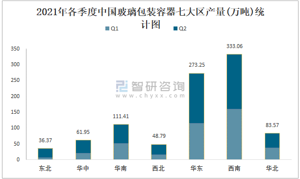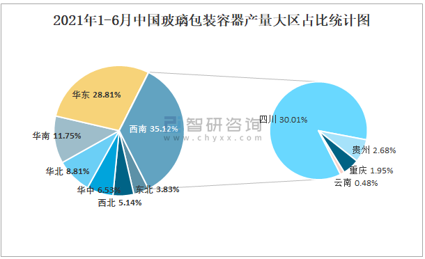 2021年1-6月中國(guó)玻璃包裝容器產(chǎn)量為948.4萬(wàn)噸 西南地區(qū)產(chǎn)量最高(占比35.12%)