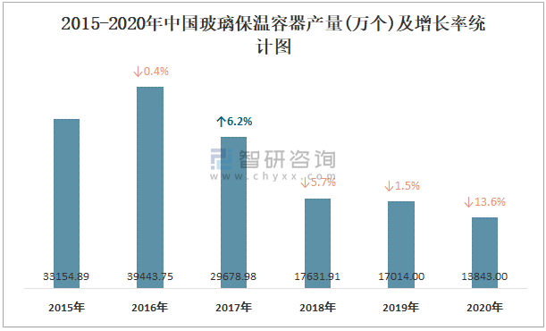 2015-2020年中國玻璃保溫容器產量及增長率統計圖