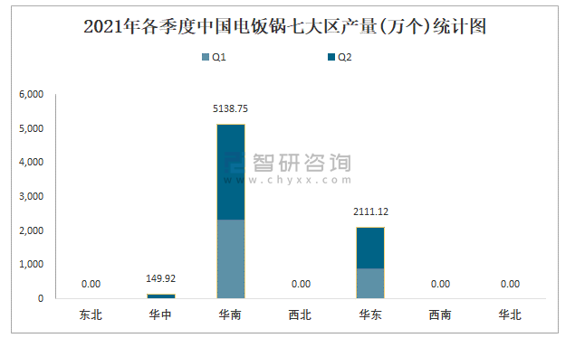 2021年1-6月中國電飯鍋產量為7399.8萬個 華南地區產量最高(占比69.44%)