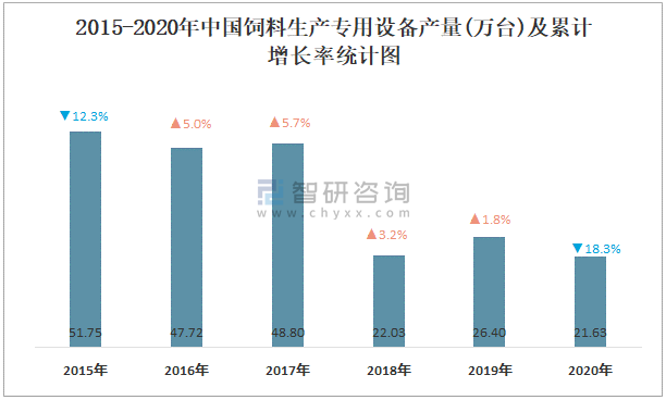 2015-2020年中國飼料生產專用設備產量及增長率統計圖