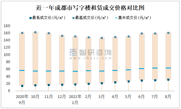 近一年成都市寫(xiě)字樓租賃成交價(jià)格對(duì)比圖