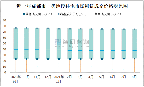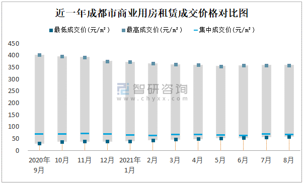 近一年成都市商業(yè)用房租賃成交價(jià)格對(duì)比圖